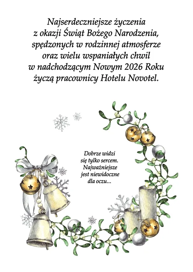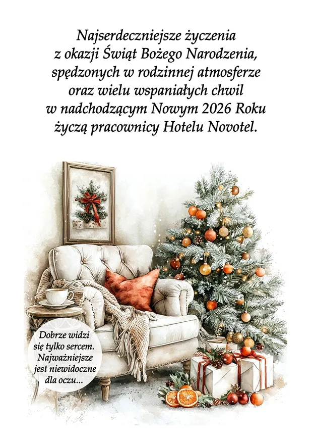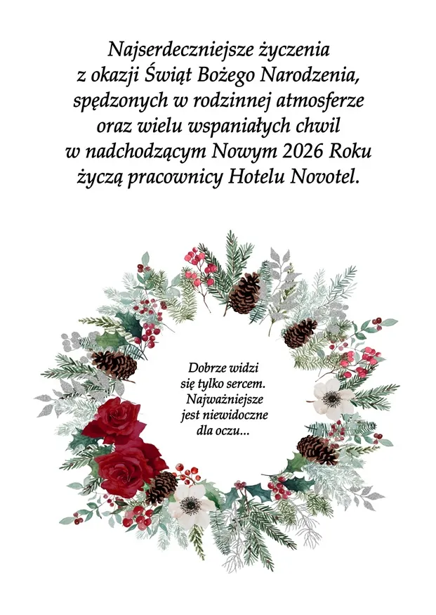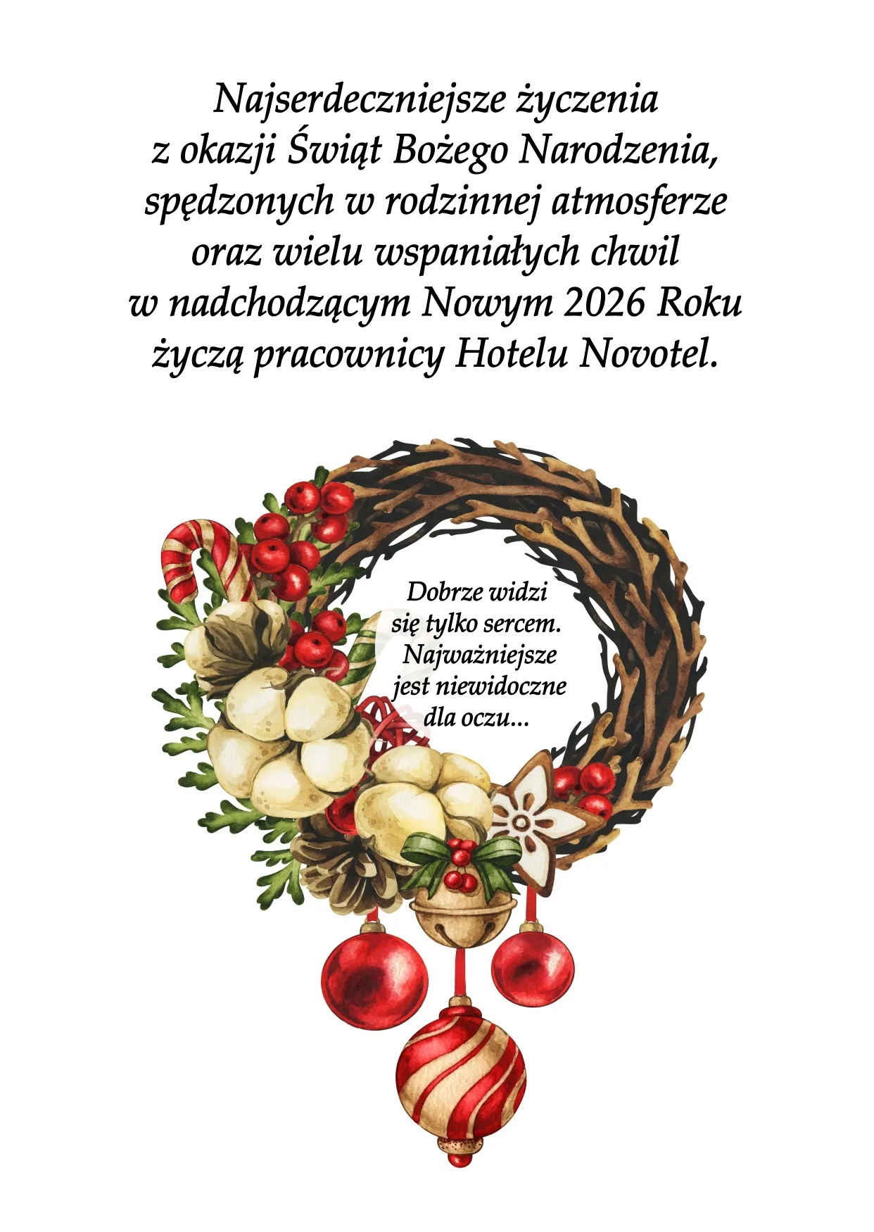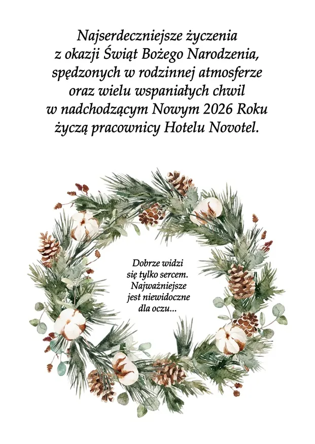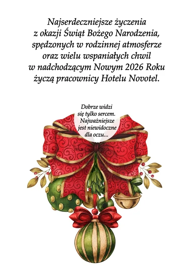 "Najserdeczniejsze życzenia z okazji Świąt Bożego Narodzenia, spędzonych w rodzinnej atmosferze oraz wielu wspaniałych chwil w nadchodzącym Nowym 2026 Roku życzy"