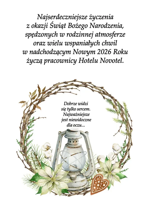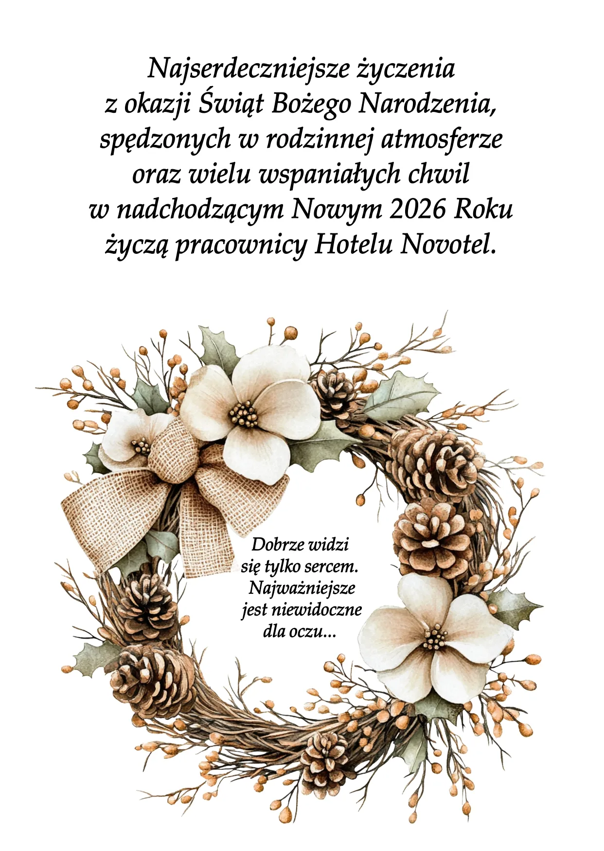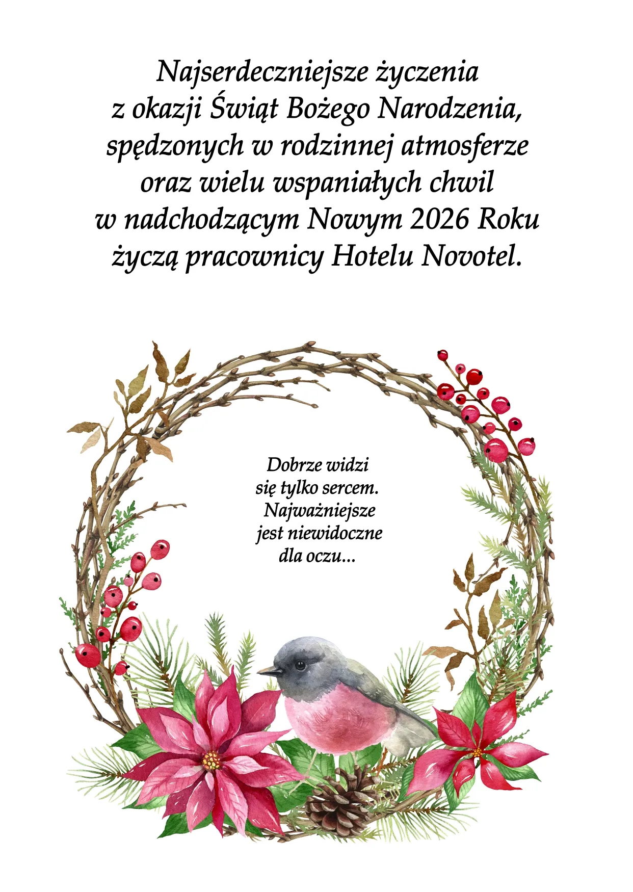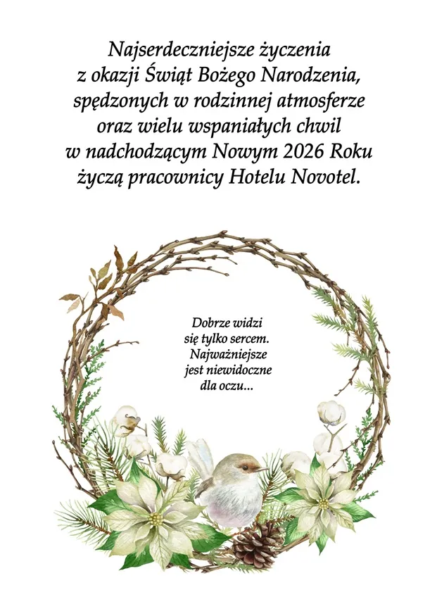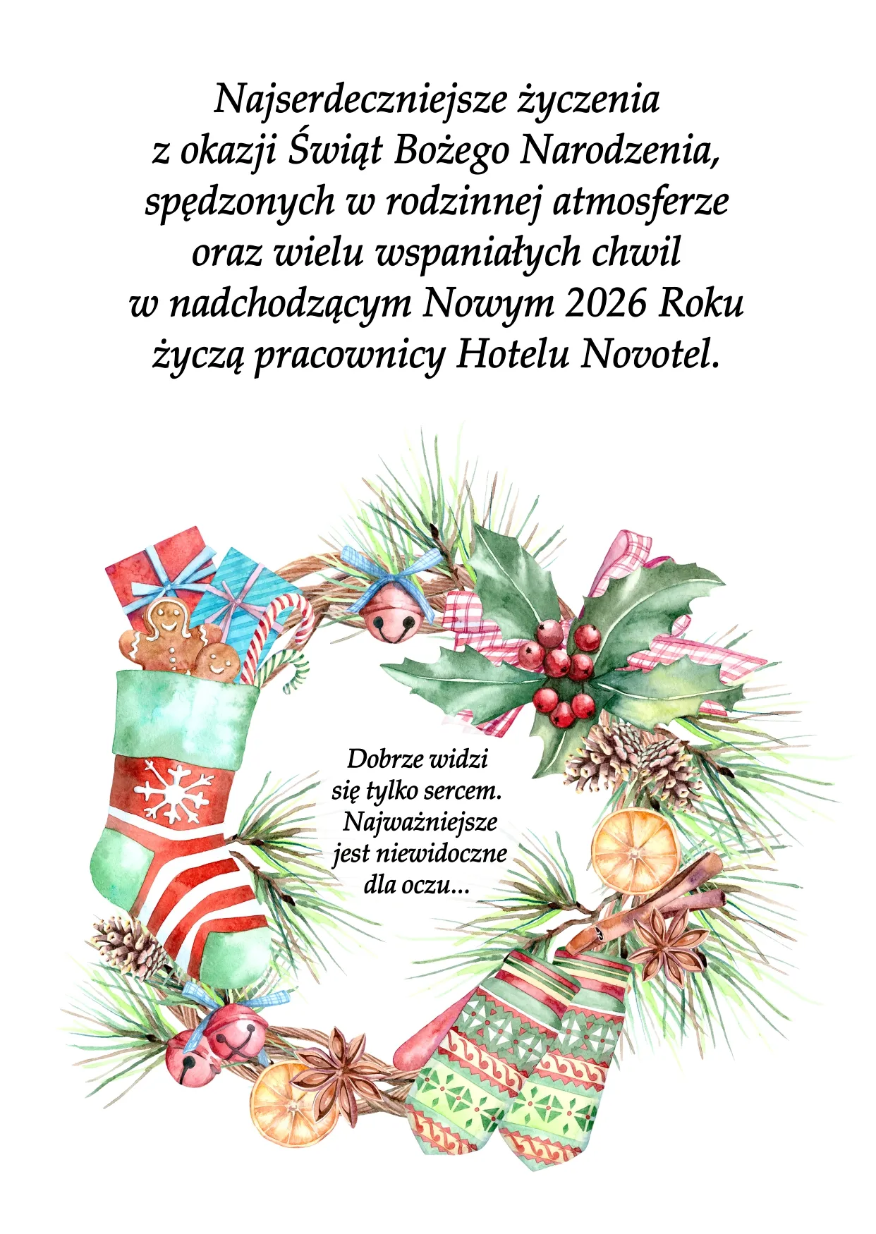 "Najserdeczniejsze życzenia z okazji Świąt Bożego Narodzenia, spędzonych w rodzinnej atmosferze oraz wielu wspaniałych chwil w nadchodzącym Nowym 2026 Roku życzy"