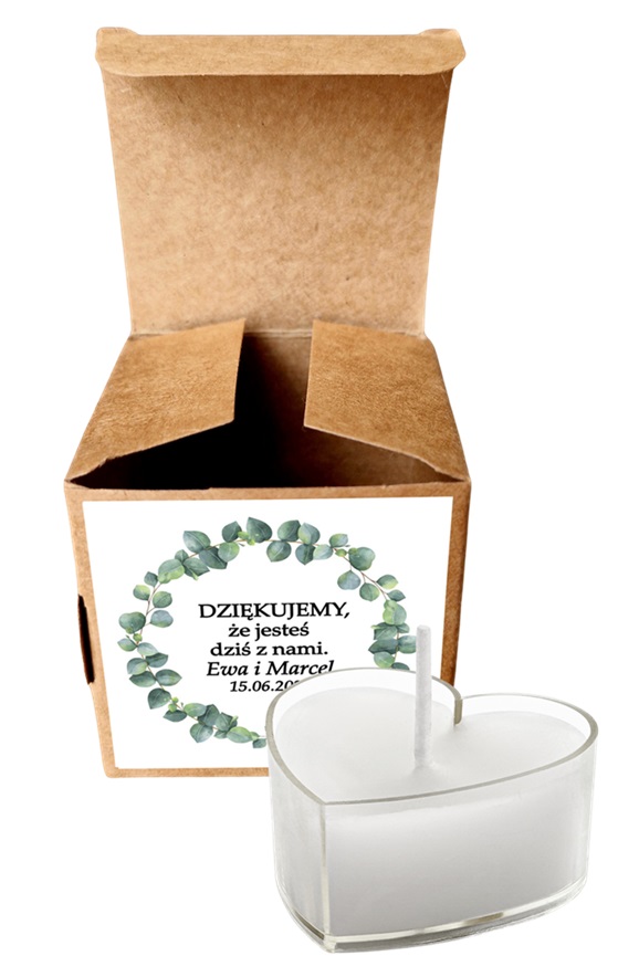 Świeczki na podziękowanie dla gości weselnych - serce z liści